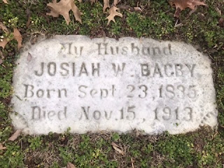 In the cropped image above, Martha indicated on her application that she had no real estate and that her personal property was valued at $25. Based on the application it is then surprising that she was able to afford a tombstone for Josiah when he died four months earlier. Unfortunately, when Martha died in 1922, there apparently was not any money left after her burial, and she is buried in the family plot without a tombstone.